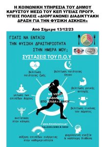 Καρύστου μέσω του ΚΕΠ Υγείας – Πρόγραμμα Υγιείς Πόλεις