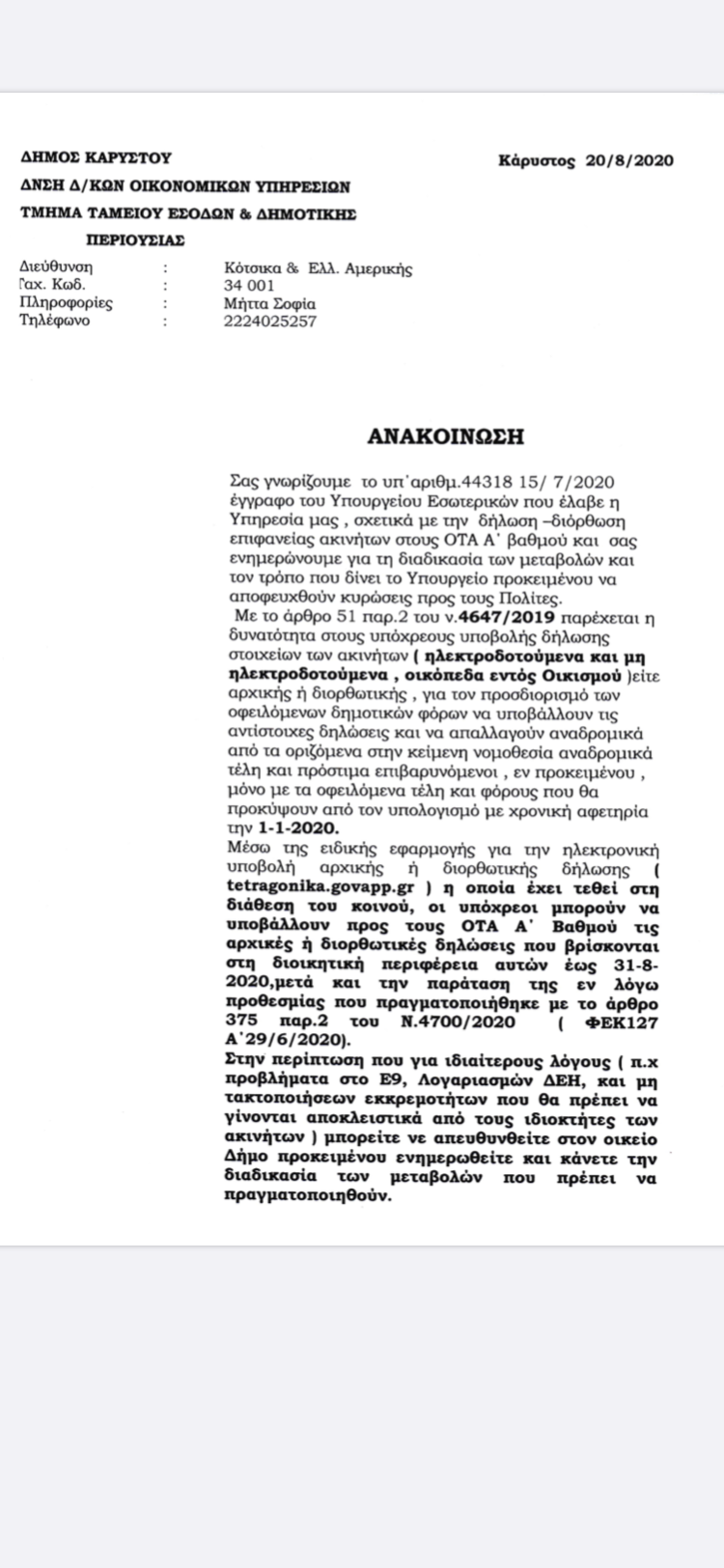 Είναι, επίσης, δεδομένο ότι η έκτακτη κατάσταση στην οποία βρισκόμαστε για πολλούς μήνες, εξαιτίας της πανδημίας του κορωνοϊού, έχει δημιουργήσει δυσκολίες σε πολλούς πολίτες, ιδιαίτερα μεγαλύτερης ηλικίας και όχι εξοικειωμένους με το διαδίκτυο, να ολοκληρώσουν αυτές τις δηλώσεις.