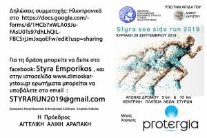 Ο ΕΜΠΟΡΙΚΟΣ – ΕΠΑΓΓΕΛΜΑΤΙΚΟΣ & ΒΙΟΤΕΧΝΙΚΟΣ ΣΥΛΛΟΓΟΣ ΣΤΥΡΕΩΝ σε συνεργασία με τη GoldenRun και Μέγα χορηγό την PROTERGIA, προκηρύσσουν την Κυριακή 29 Σεπτεμβρίου, τη διεξαγωγή αθλητικής δραστηριότητας δρόμου 5,05 χλμ και 10,01χλμ., σε δημόσιο δρόμο καθώς και παιδικής αθλητικής δραστηριότητας 1.000,1 μ. με την ονομασία «Styra Sea side run 2019» στα Νέα Στύρα Ευβοίας υπό την αιγίδα του Δήμου Καρύστου.